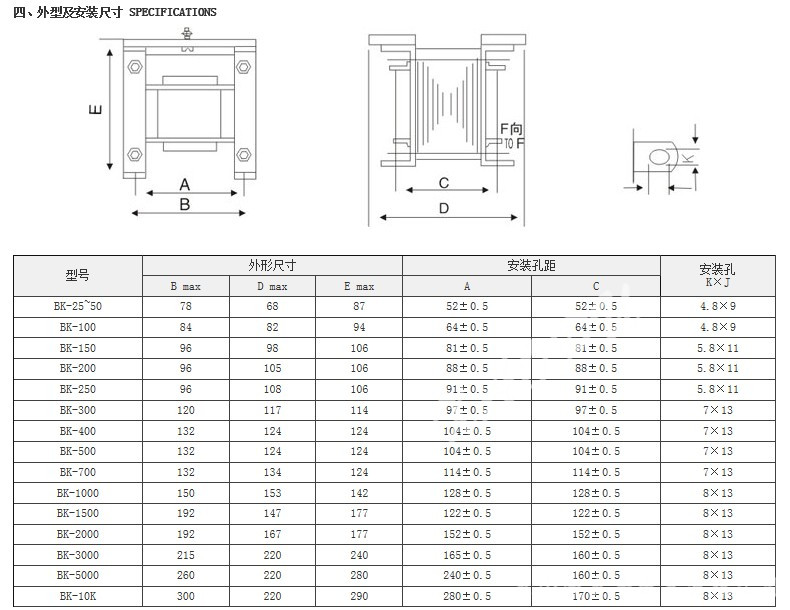 【產品名稱】BK-500VA W控制隔離干式變壓器
