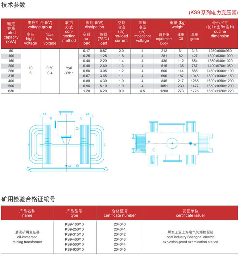 KS9三相油浸式礦用電力變壓器